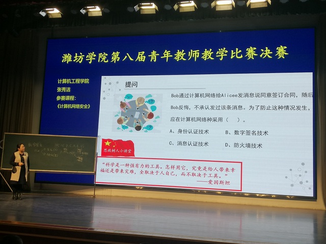 11月26日,潍坊学院第八届青年教师教学比赛决赛在学校图书馆报告厅举行。我院教师张秀洁博士经过初赛、复赛、决赛等多个环节的激烈角逐后脱颖而出,获得二等奖的好成绩。