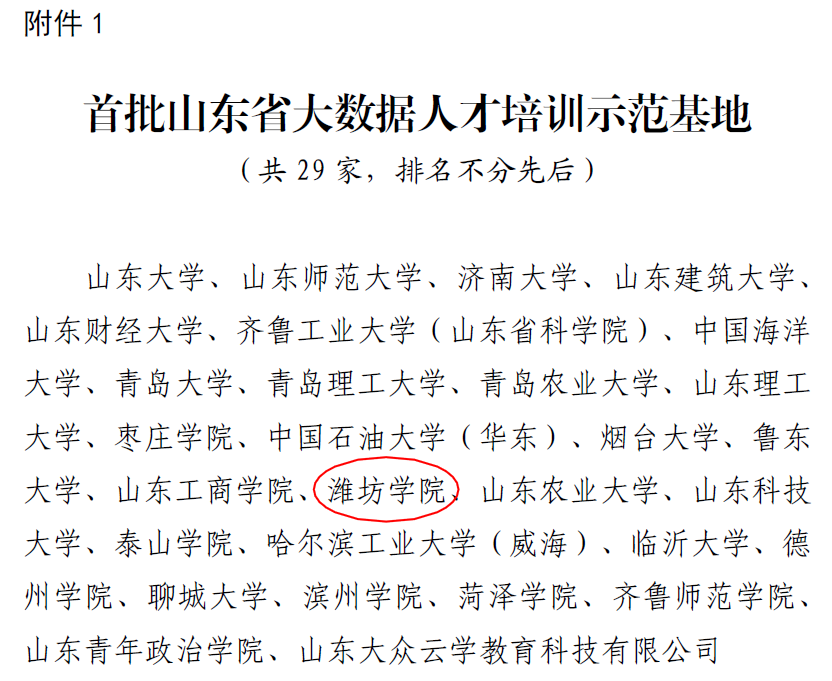 近日,山东省大数据局印发《关于公布首批山东省大数据培训基地名单的通知》(鲁数字【2021】1号),我院成功入选为首批“山东省大数据人才培训示范基地”,也是潍坊地区唯一获批单位。2月1日,院长王成端教授和王磊博士在阳光大厦二楼会议室参加颁牌仪式,并就2021年度工作计划进行了座谈交流。