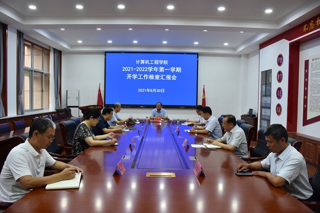 院长王成端代表学院从暑假工作总结、开学前工作准备、开学第一天教学秩序运转情况等方面,向检查组做了简要汇报。