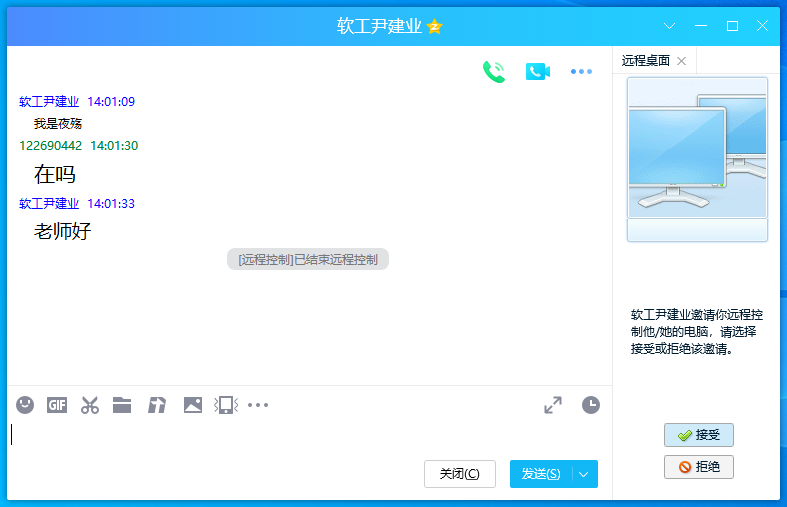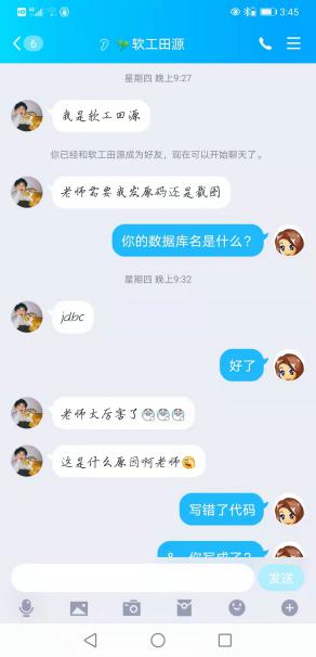 说到答疑解惑,崔老师绝对是五星级“人工客服”。每次课后她都跟学生交代如果有问题可以随时联系,她24小时在线,保证第一时间解答大家的问题。她还设定了答疑路径“套餐”供学生们选择——钉钉群或QQ,根据问题类型来自选:一般问题,在钉钉群解答;调试程序出错的问题,利用QQ的“请求控制对方电脑”功能,远程操作学生的电脑,帮助学生调试程序,很好的解决了不能面对面跟学生交流调试程序中遇到的问题。