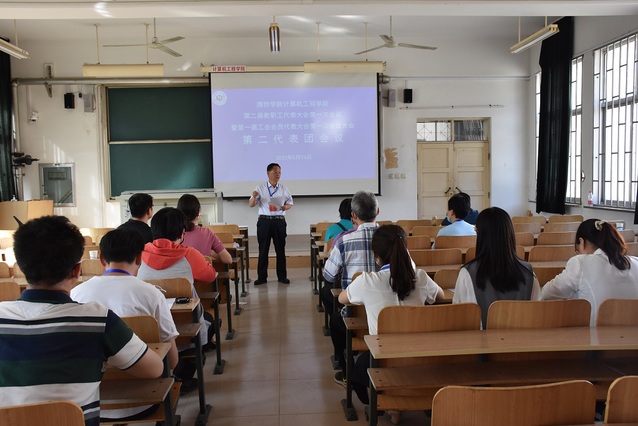 王成端作了题为《激发内生动力,推动内涵发展,奋力开创学院各项事业新局面》的工作报告。《报告》从党建和思政工作、深化教育教学改革、强化学科建设、涵养优良师风、大学生思想政治教育等五个方面,回顾总结了一届一次教代会以来学院各项事业发展取得的成绩,实事求是分析了存在的问题和不足。《报告》还对今后一年学院改革发展建设的重点任务作出了部署安排。一是聚焦全面加强党的建设,为学院改革发展提供坚强政治保证。二是聚焦优化升级,持续推进教育教学改革。三是聚焦学科筑峰,促进学科建设和科学研究再上新台阶。四是聚焦提质增效,深化师资队伍建设。五是聚焦铸魂育人,大学生思政教育全面加强。