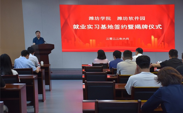 长期以来,我院积极服务地方经济社会发展,先后派出4名教师在潍坊软件园、高新区科技局、高新区信息化与新兴产业发展办公室等单位挂职锻炼。与潍坊软件园一直在技术创新、人才培养等产学研合作方面有着密切的互动交流。两年与软件园合力搭建就业平台,定期举办校园招聘会,累计组织60余家和我校相关专业的近千名毕业生进行“精准对接”。通过前期走访软件园及互联网产业园的26家企业,本次遴选出5家企业建设潍坊学院大学生就业实习基地。