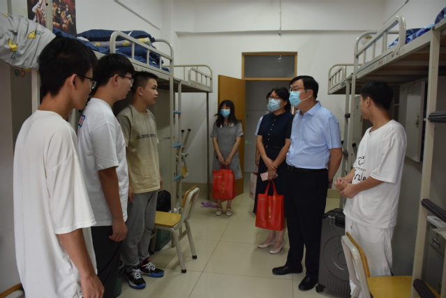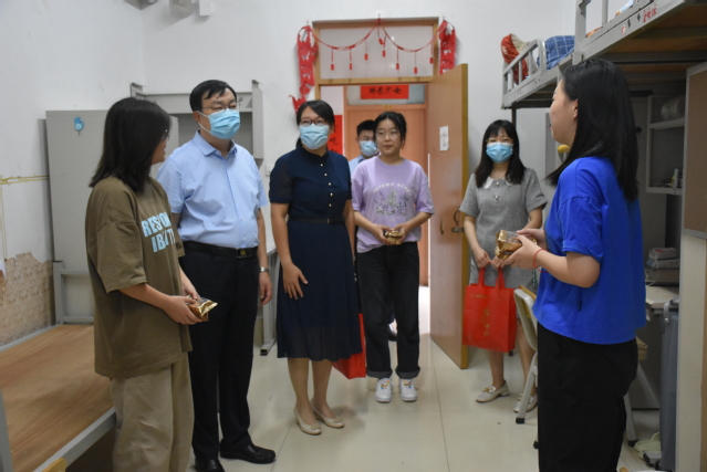 每走访一间宿舍,张书记、王院长都会详细了解新生们的学习、住宿、饮食等适应情况,耐心解答同学们的疑虑,叮嘱同学们尽快了解和熟悉校园情况,适应新环境,熟悉新同学;遇到困难和问题及时与辅导员沟通;疫情防控期间更要注意宿舍的整洁卫生、通风换气等问题。同时也叮嘱同学们给家里报一声平安,给自己的父母长辈送去一声祝福。