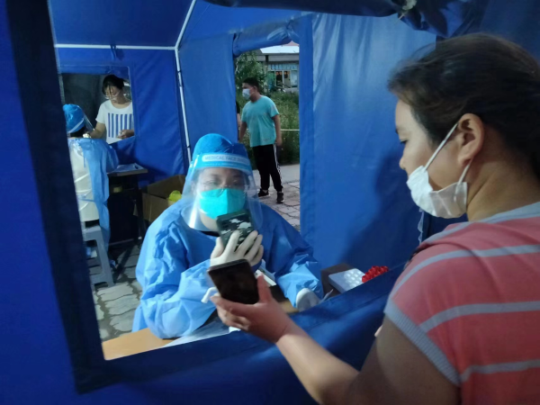 李亚楠同学在济南市章丘区宏昌小区进行志愿活动,为切实做好对于疫情的防范工作,提高小区业主的安全防范意识,积极向居民进行疫情防护知识的普及宣传,同时配合核酸检测人员进行信息登记,在工作岗位上扫码核对信息。为提高检测效率,避免社区开展核酸检测时突发情况对检测造成影响,李亚楠主动来到检测摊位前引导和指挥居民的检测路线,经常不辞辛劳的工作到很晚,在疫情防控的岗位上认真值守,用坚实的行动诠释着当代大学生的爱心和担当。