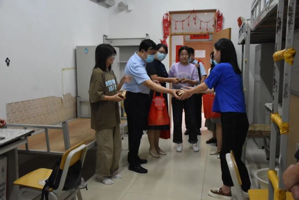 9月8日,我院65名省外新生顺利完成报到并入住弘德书院。9月9日,正值中秋之际,学院党总支书记张晓静、院长王成端带领学生工作办公室老师深入公寓走访慰问新生,了解新生入住情况,为大家送去精心准备的中秋月饼及节日问候和祝福。