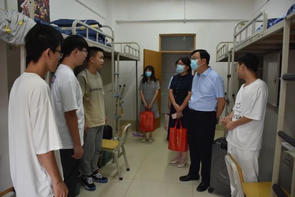 每走访一间宿舍,张书记、王院长都会详细了解新生们的学习、住宿、饮食等适应情况,耐心解答同学们的疑虑,叮嘱同学们尽快了解和熟悉校园情况,适应新环境,熟悉新同学;遇到困难和问题及时与辅导员沟通;疫情防控期间更要注意宿舍的整洁卫生、通风换气等问题。同时也叮嘱同学们给家里报一声平安,给自己的父母长辈送去一声祝福。