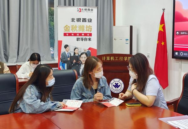 本次招聘活动为避免人员聚集,采取线上线下相结合的方式举办。线下主会场设在计算机工程学院,政法、建工、经管和物电学院设立线上分会场,共计有100余名同学参加此次活动。
