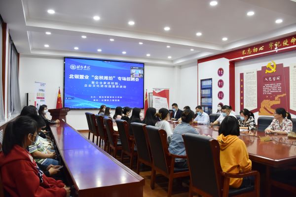 本网讯 9月27日,由学生工作处主办、我院承办的北银置业“金秋潍坊”校园专场招聘会暨企业家进校园、企业文化进校园宣讲活动成功举办。我院党总支书记张晓静、学生工作处就业工作人员、北银置业相关工作人员参加会议。会议由学生工作处副处长王秀慧主持。