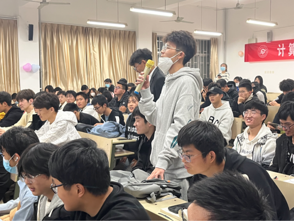 武传琪给同学们普及计算机专业的重要课程和学习重点,鼓励同学们积极参加各种竞赛,培养自己的创新创业能力。