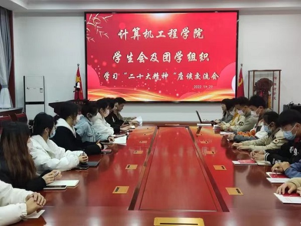 为深入学习贯彻党的二十大精神,进一步激发学生爱党爱国热情,弘扬新时代奋斗精神,11月23日下午,计算机工程学院召开学生会及团学组织学习党的二十大精神专题座谈会。学院专职团干部陈燕玲,辅导员张爽、贺梦凡老师,学生会及团学组织代表参加座谈交流。