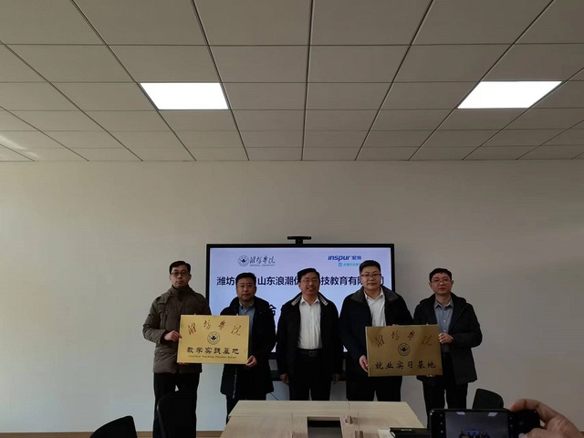 2月23日,山东浪潮集团山东浪潮优派科技教育有限公司副总经理陈天真,市场部经理王士松一行到校访交流洽谈,合作发展处处长张华出席交流座谈会并讲话。教务处、我院相关负责同志参加了交流座谈会,双方签署共建计算机专业人才就业实习基地协议及教学实践基地协议,并举行了授牌仪式。