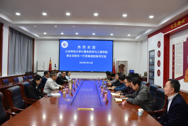 3月15日,山东科技大学计算机科学与工程学院院长梁永全,副书记、副院长郝亮,副院长赵卫东等一行人来我院对工程教育专业认证相关事宜进行交流研讨,我校党委委员、副校长、学院院长王成端,教务处处长侯金奎,副院长刘瑜,学院工程认证有关负责同志参加活动。