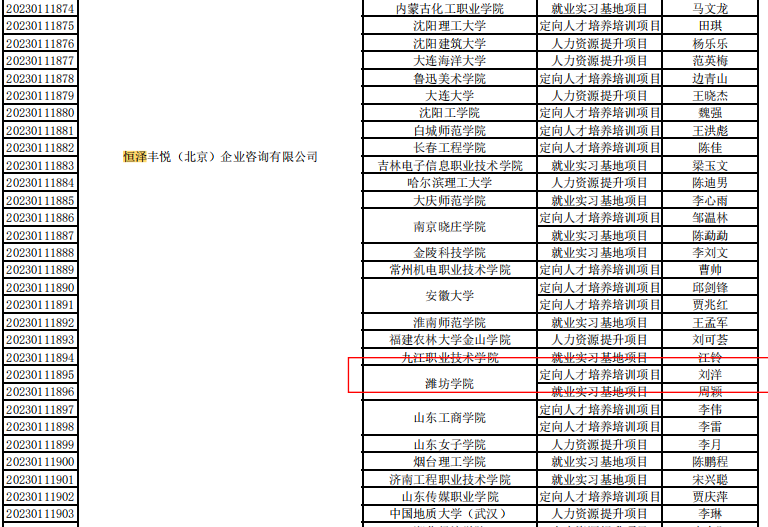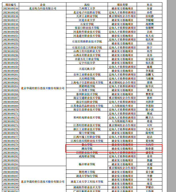 目前,教育部发布了《教育部高校学生司关于公布第二期供需对接就业育人项目立项名单的通知》(教学司函〔2023〕6号)。我院陈春雷老师申报的“智能物联技术人才就业实习基地建设”获批立项,对接企业为华晟经世信息技术有限公司。刘洋老师申报的“供需对接就业育人”获批立项,对接企业为恒泽丰瑞(北京)企业咨询有限公司。