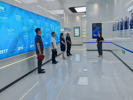 任秀洁书记一行首先参观了企业展厅,深入了解公司的产业布局、技术研发进展以及临床应用实例,对公司在生物医学领域的创新成果表示高度赞赏。