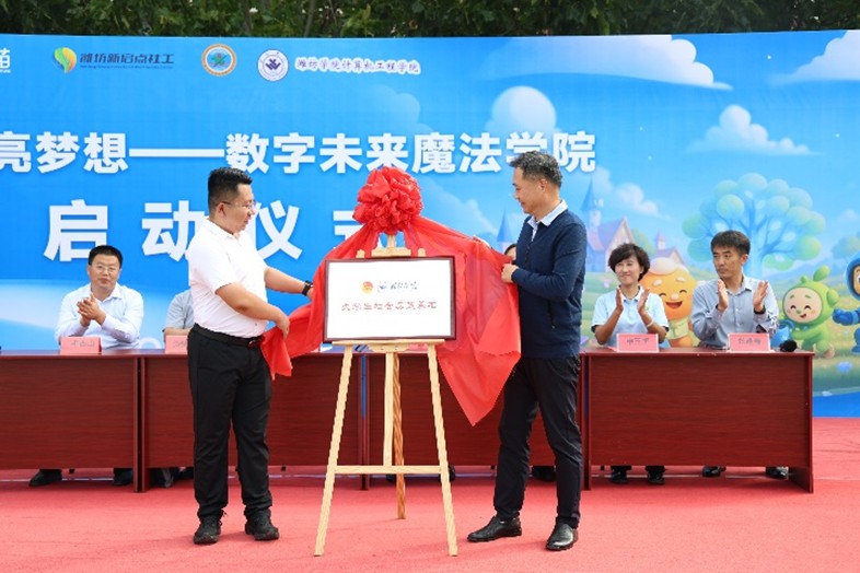 为切实助力乡村儿童数字素养与AI素养教育,提升乡村儿童数字素养与安全防护能力。10月9日,计算机工程学院与坊子区教育和体育局、北京联想公益基金会项目、潍坊市新启点社会工作服务中心联合举办“用AI点亮梦想——数字未来魔法学院”项目启动仪式,以专业力量为乡村学子开启AI数字世界的大门,助力乡村小学教育高质量发展。潍坊市科技局高新科一级主任科员杜升明、坊子区招生考试研究中心主任张逢春、潍坊市青少年发展服务中心希望工程科科长王芳、潍坊市新启点社会工作服务中心理事长申玉恒、坊子区杨庄小学校长王宗师、计算机工程学院党委副书记朱万山出席活动。