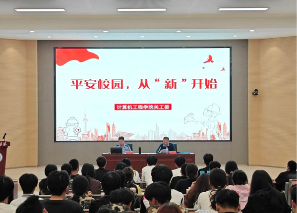 为深入贯彻落实关心下一代工作要求,进一步强化学生安全意识,扎实做好校园安全工作,2025年10月14日晚,潍坊学院计算机工程学院关工委精心组织以“做安全和谐发展促进者”为主题的安全法制宣讲活动,活动在4109教室顺利举行。潍坊市奎文区广文派出所民警赵书彬警官受邀担任宣讲嘉宾,计算机工程学院党委副书记朱万山出席活动。
