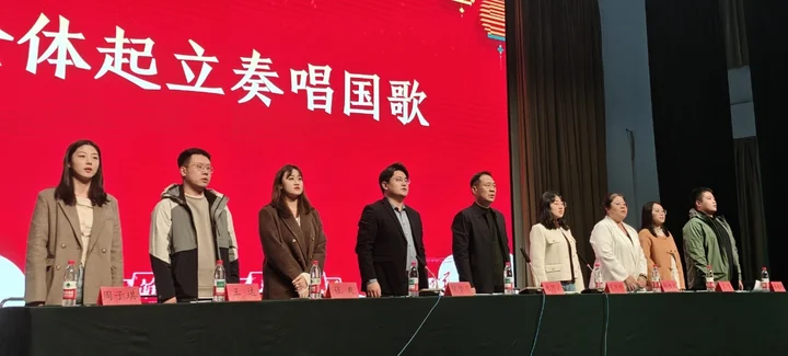 大会在庄严的国歌声中拉开帷幕,全体成员起立高唱国歌,歌声嘹亮,彰显着青年学子的爱国情怀与昂扬风貌。