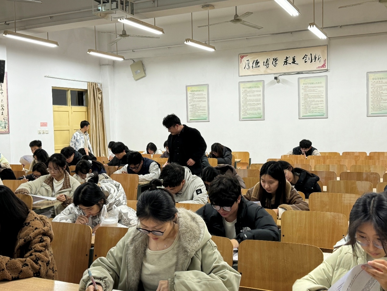 考试前,学院团委精心筹备,明确考试纪律与流程,细化监考职责,确保考核工作规范有序推进;考场上,监考人员严格履职,全程规范监考;考生们沉着冷静、认真作答,在笔尖流转间展现扎实的理论积累与向上的精神风貌,考场秩序井然,氛围严肃认真。