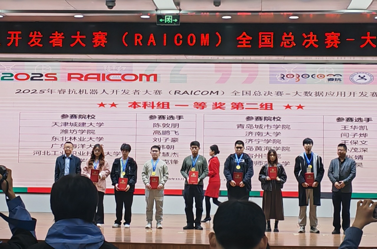 2025年睿抗机器人开发者大赛(RAICOM)全国总决赛-大数据应用开发赛项在河北工业职业技术大学圆满落幕。本次大赛于11月14日至16日正式举办,经过为期三天的激烈角逐,计算机工程学院学子凭借扎实的专业功底、出色的创新思维和默契的团队协作脱颖而出,最终斩获全国一等奖1项、二等奖1项、三等奖2项,充分展现了计算机工程学院学子的过硬综合素质。