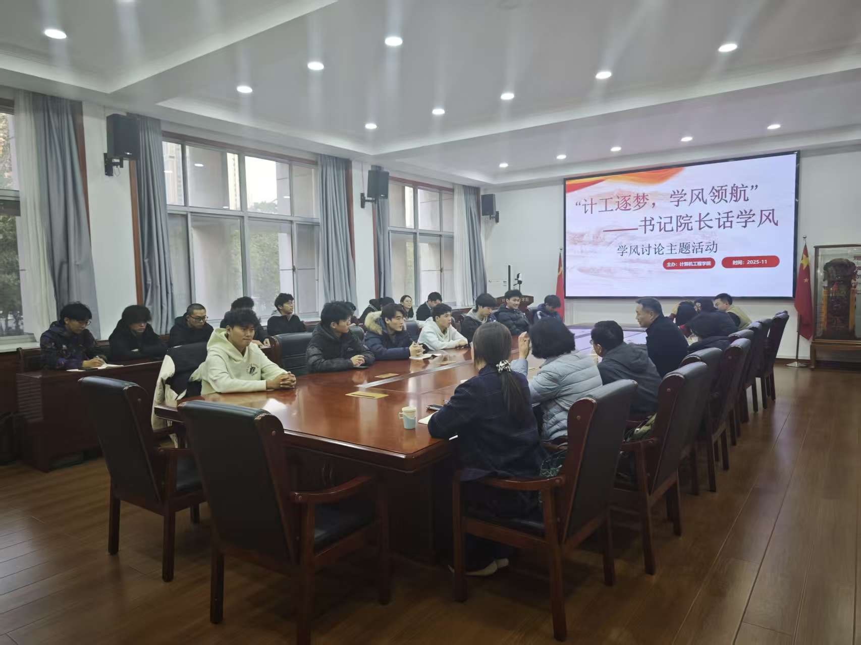 为进一步夯实计算机工程学院学风建设基础,营造勤学善思、求真务实的育人氛围,2025年11月20日,计算机工程学院举办“计工逐梦,学风领航”——书记院长话学风学风讨论主题活动。计算机工程学院党委副书记朱万山牵头主持,教师代表、全体辅导员、2024级全体班长齐聚天一楼7222会议室,围绕学风建设关键问题展开深入研讨,凝聚共识、明确方向。