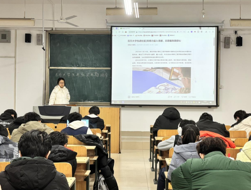 此次主题班会的召开,不仅让同学们深入了解了“百万大学生进社区”活动的核心要义与实践路径,更凝聚了青春共识,激发了服务热情。下一步,计算机工程学院将持续加强与地方社区的精准对接,完善实践指导与服务保障机制,为同学们搭建更广阔的实践平台。期待全体学子以此次班会为契机,主动投身社区实践,将专业所长转化为服务社会的实际能力,在基层一线锤炼品格、增长才干,用青春行动书写新时代大学生的责任与担当,让青春之花在社区服务中绚丽绽放!