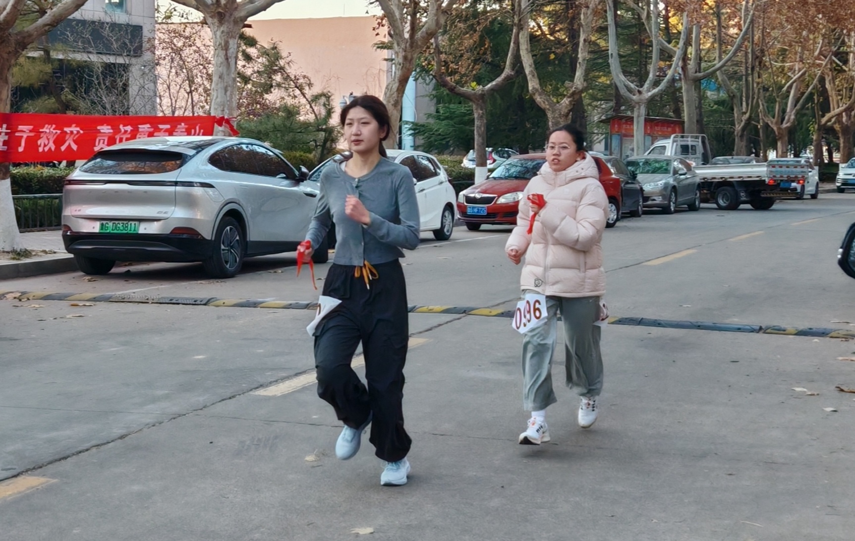 赛道上,既有奋勇争先的激烈角逐,也充满了互帮互助的同窗情谊。男生们展现出充沛的体能,迈着有力的步伐在前领跑。女生们也不甘示弱,以持久的韧性稳步前行,不断超越自我,奔向终点。志愿者们也在为选手们加油助威,指引方向,为同学们提供热心的服务。