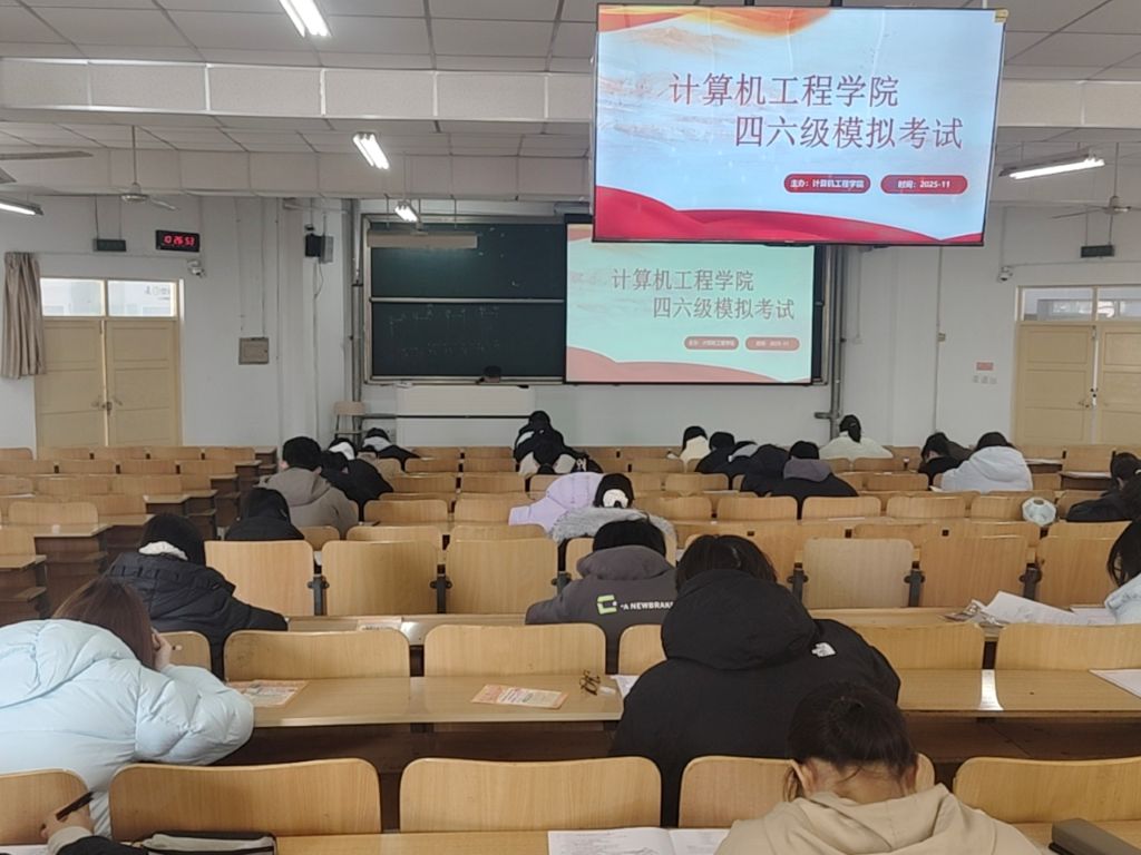 为帮助学子提前熟悉全国大学英语四六级考试流程、精准把握题型特点,切实提升应试能力与备考效率,2025年11月30日,计算机工程学院在7217教室组织开展大学英语四六级模拟考试,各年级备考学子积极报名参与,在实战演练中查漏补缺、夯实基础。