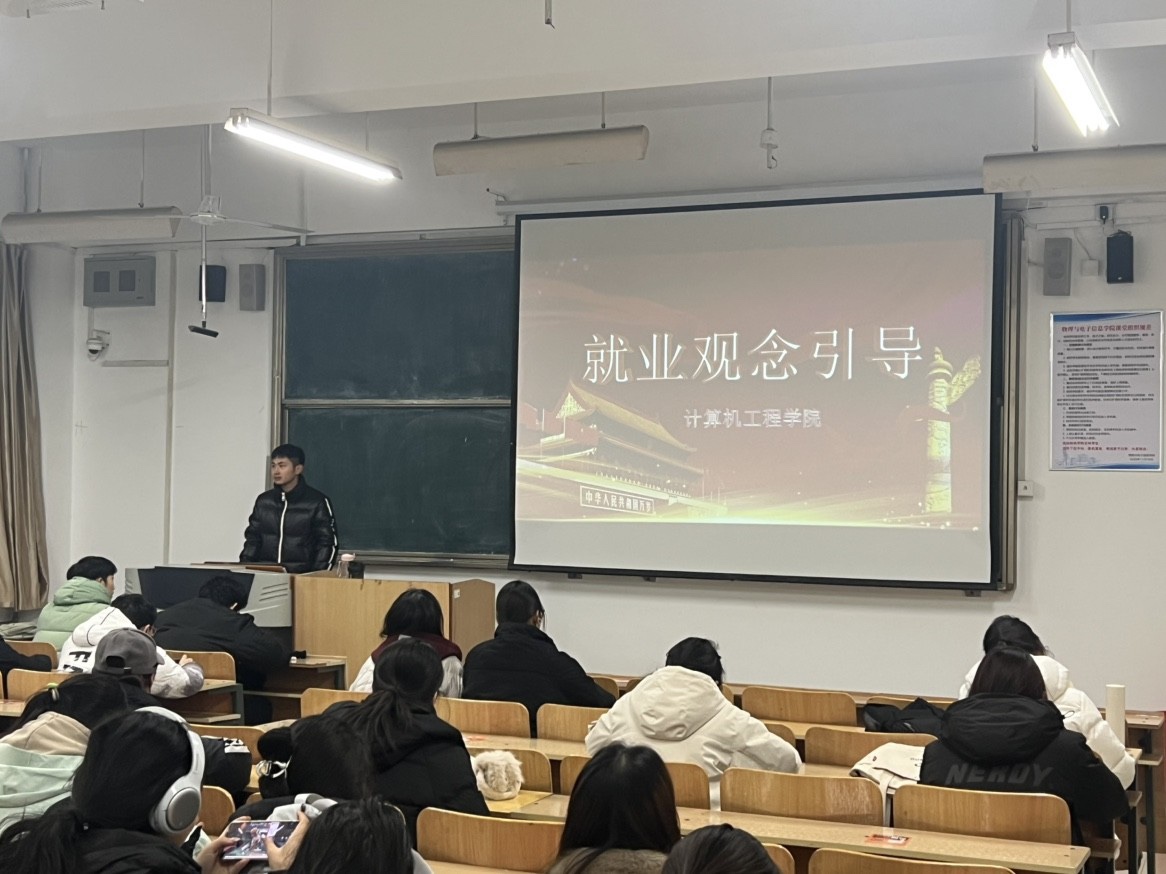 为帮助计算机工程学院学生准确把握就业形势,树立科学就业观与择业观,提升就业竞争力,2025年12月10日下午,计算机工程学院在天一楼7217教室举办了以“前瞻·定位·启航”为核心的就业观念引导主题宣讲会。计算机工程学院团委副书记贺梦凡、2022 级及 2023 级辅导员、潍坊学院合作企业代表,以及 2022 级、2023 级本科在校生代表共同参与了本次活动。