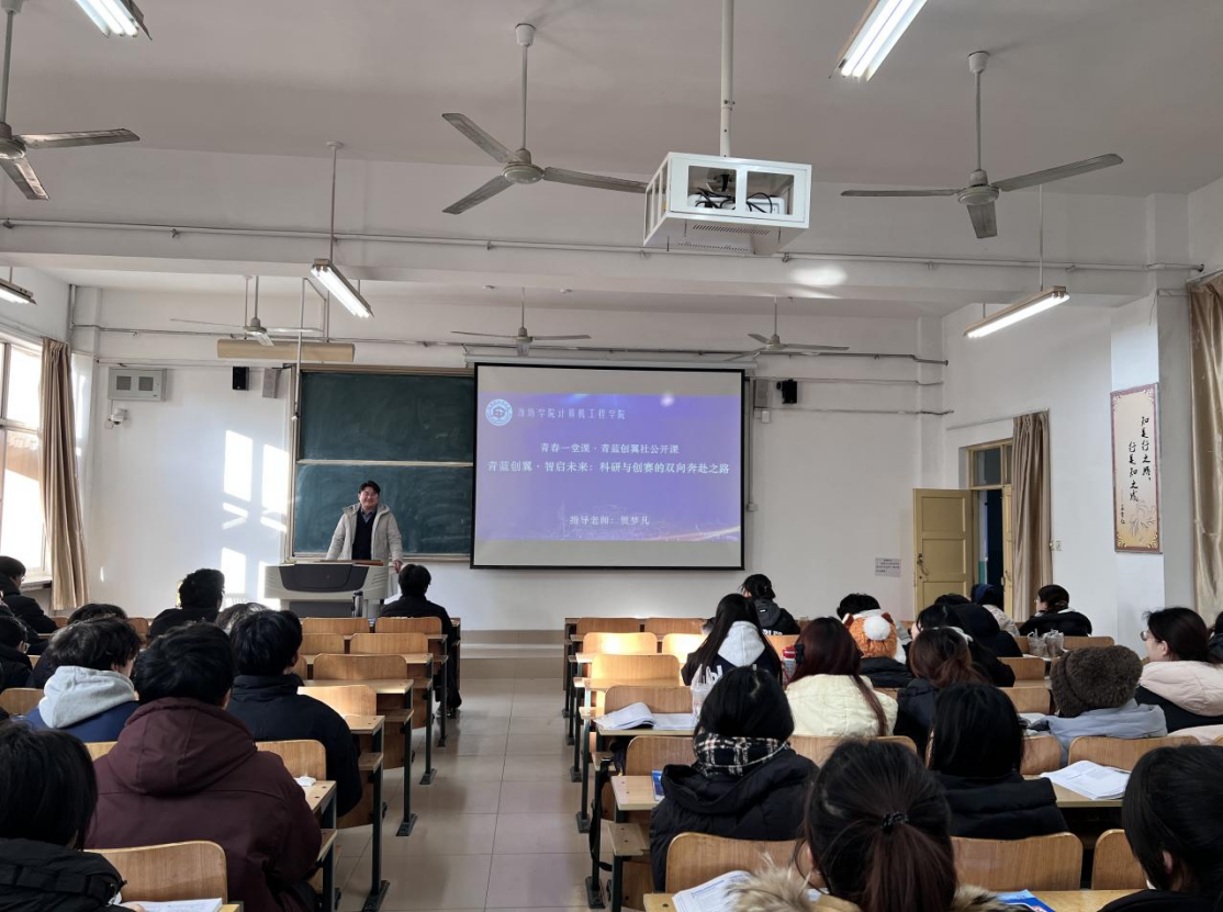 12月17日上午十点,青蓝创翼社公开课在天一楼7112正式开讲。本次公开课以“青蓝创翼・智启未来:科研与创赛的双向奔赴之路”为主题,邀请青蓝创翼社指导老师贺梦凡为现场百余名怀揣科研梦想与创业热情的计算机工程学院学子带来了一场干货满满的思想盛宴。