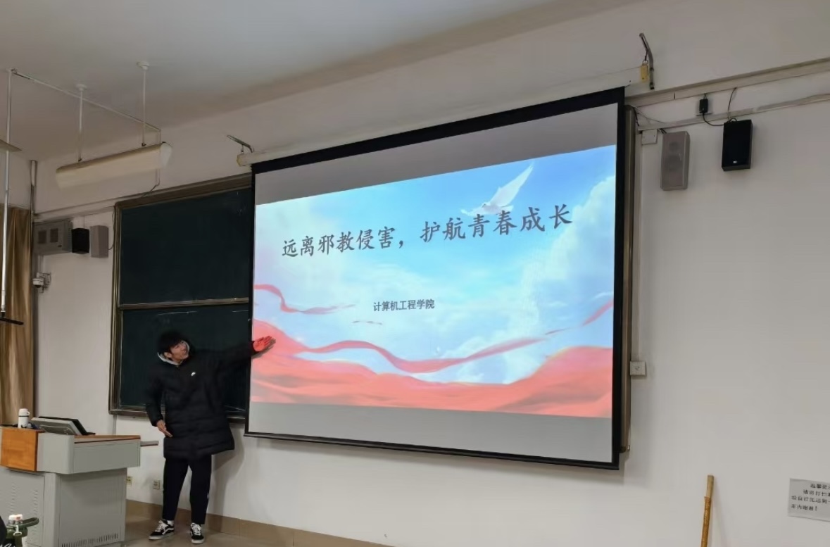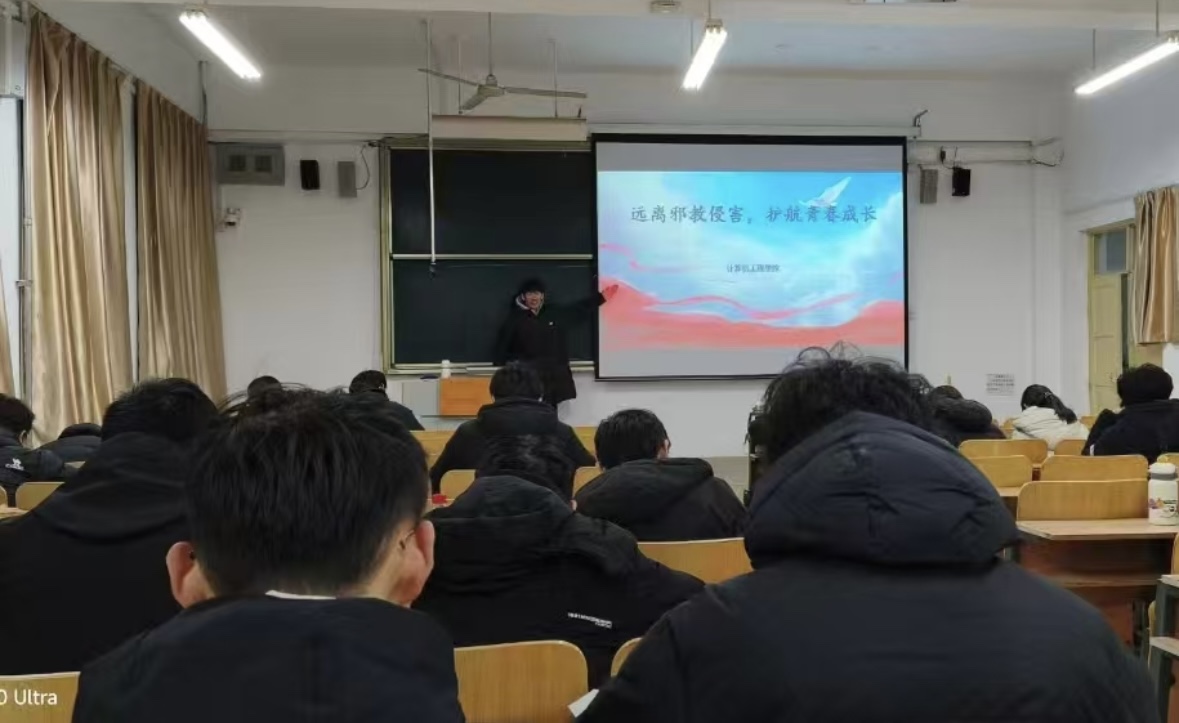 为增强学生对邪教危害的认知能力和防范意识,引导学生树立正确的世界观、人生观和价值观,守护校园安全稳定与学生健康成长,12月20日,计算机工程学院在7217教室举办“远离邪教侵害,护航青春成长”线下宣讲活动,各年级学生代表参加。