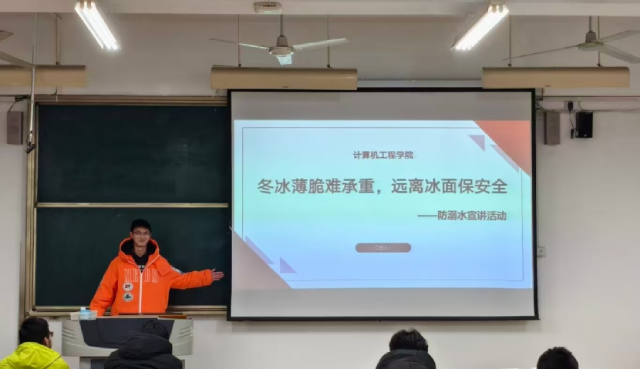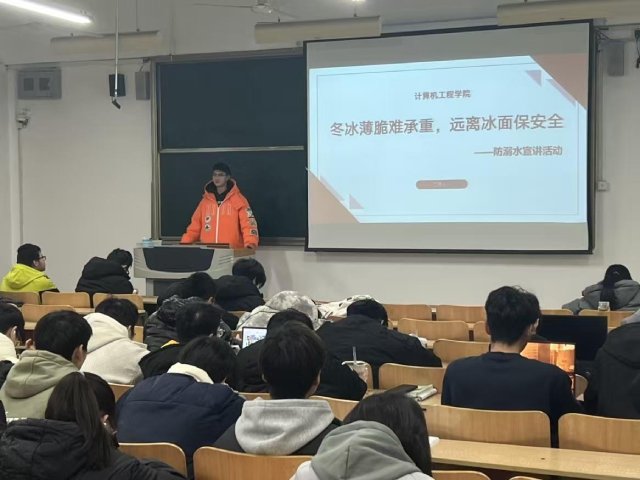 为切实增强大学生冬季防溺水安全意识,普及冰面溺水防护与自救互救知识,有效防范冬季隐蔽性水域安全事故发生,2025年12月12日晚七点,计算机工程学院在天一楼7217教室举办“冬冰薄脆难承重,远离冰面保安全”冬季防溺水主题教育活动。计算机工程学院部分学生代表参与此次活动。