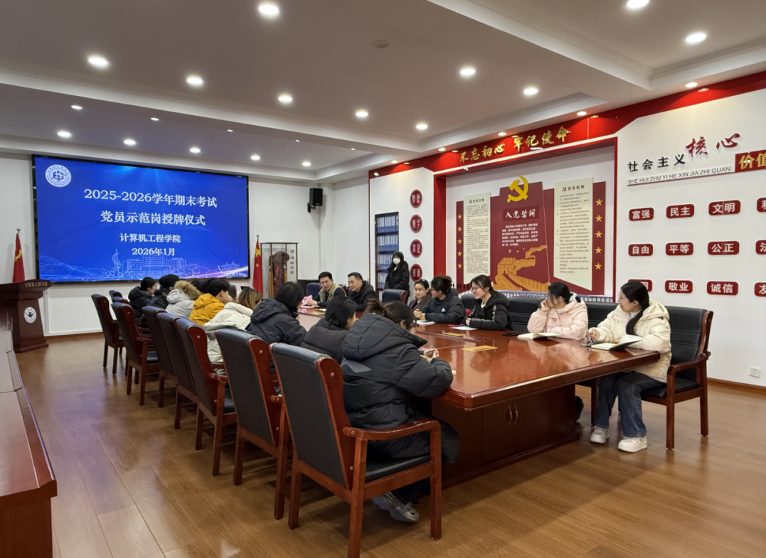 为进一步发挥学生党员在日常学习与关键环节中的先锋模范作用,严肃考风考纪,营造公平诚信、积极向上的学风氛围,1月7日下午,计算机工程学院在7222会议室举行2025-2026学年第一学期期末考试“党员示范岗”授牌仪式。学院党委副书记朱万山出席仪式,并为学生第二党支部的党员代表授牌。