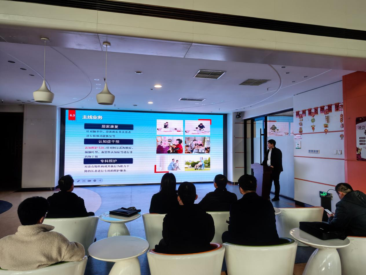 会后,实地参观了香柏养老集团总部的康复训练区、智慧照护样板间及长者文娱活动空间,细致了解入住老人的日常生活、健康监测流程及数字化服务应用场景,并就养老机构的信息化管理、数据安全、人机交互设计等技术细节与企业方深入交流。