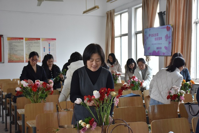 活动现场花香四溢、色彩缤纷。专业花艺师详细讲解花材知识、搭配技巧与造型要点,并现场示范。女教职工们全情投入,将智慧与巧思融入融入花束创作。原本普通的花材在指尖焕发出新的生机,变成了一件件独具特色的艺术作品。