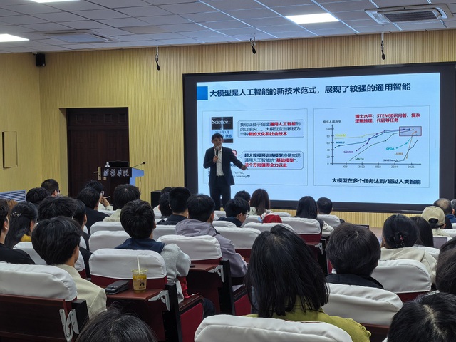 4月3日下午,我院在天一楼7306报告厅举办“大模型个性化和智能体应用”学术报告,邀请中国科学技术大学信息学院特任教授、博士生导师、国家级青年人才王文杰作专题报告。学院副院长王涛主持报告会,学院师生共同参加。