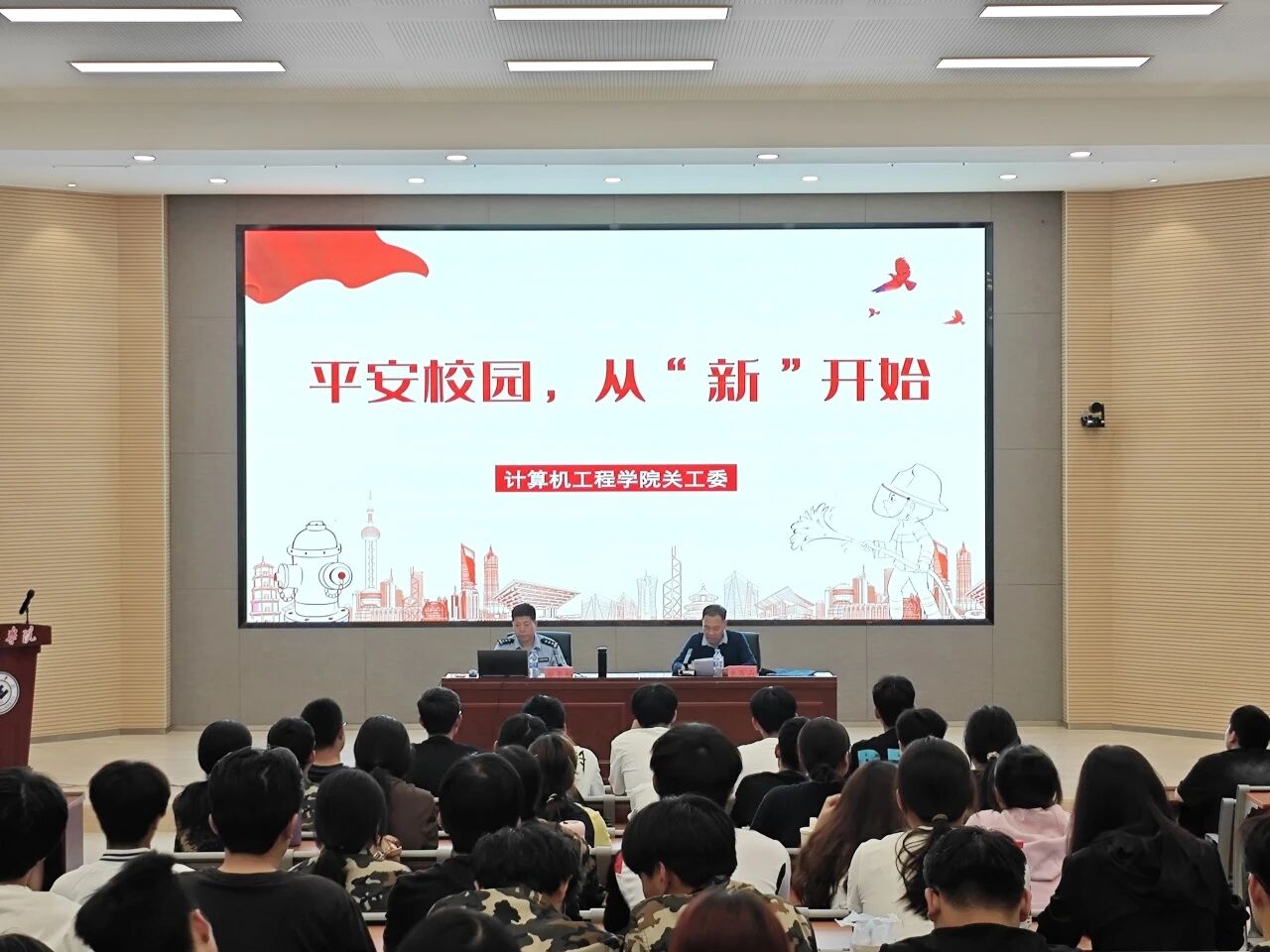 为深入贯彻落实关心下一代工作要求,进一步强化学生安全意识,扎实做好校园安全工作,2025年10月14日晚,潍坊学院计算机工程学院关工委精心组织以“做安全和谐发展促进者”为主题的安全法制宣讲活动,活动在4109教室顺利举行。潍坊市奎文区广文派出所民警赵书彬警官受邀担任宣讲嘉宾,计算机工程学院党委副书记朱万山出席活动。